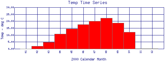 Water Temperature Time Series for 2000 Boulder Creek above WW Plant |