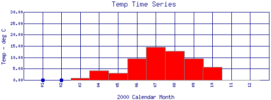 Water Temperature Time Series for 2000 Middle Boulder Creek at PSCo Weir |